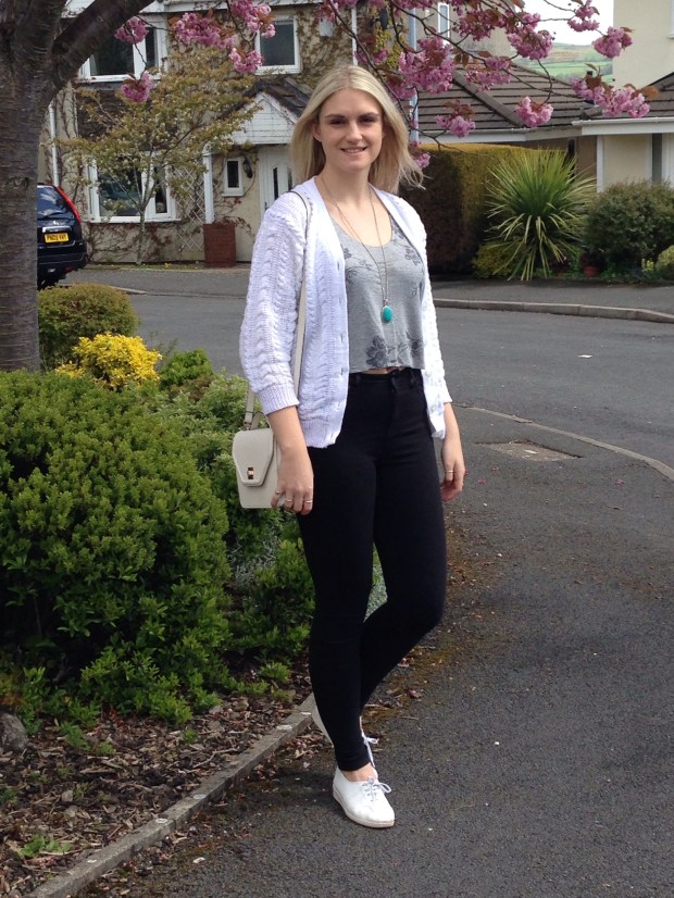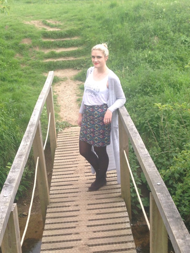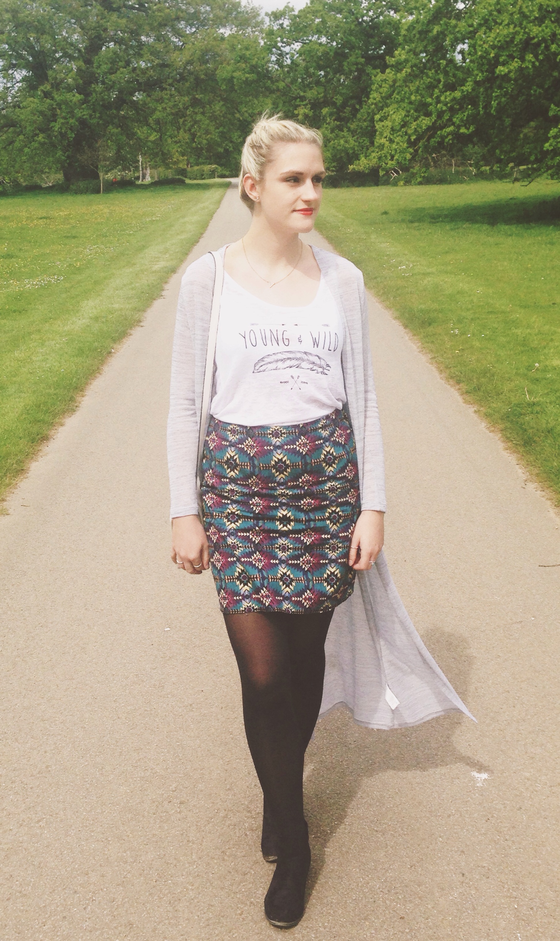 I wore this with a long cardigan (H&M), plaited belt (Topshop), brown bag (Primark) and vintage white shoes to meet friends for coffee.