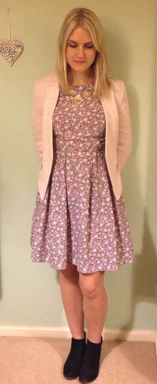 I wore my comfy Cynthia Rowley 2054 jersey dress and a cardigan my Gran knitted. I’m not sure about this one. The grey jersey fabric with black polkadots isn’t very me. It’s not something I’d pick up in a shop and so it’s not something I pick to wear very often. I do like the shape though and should probably make it in a different fabric.