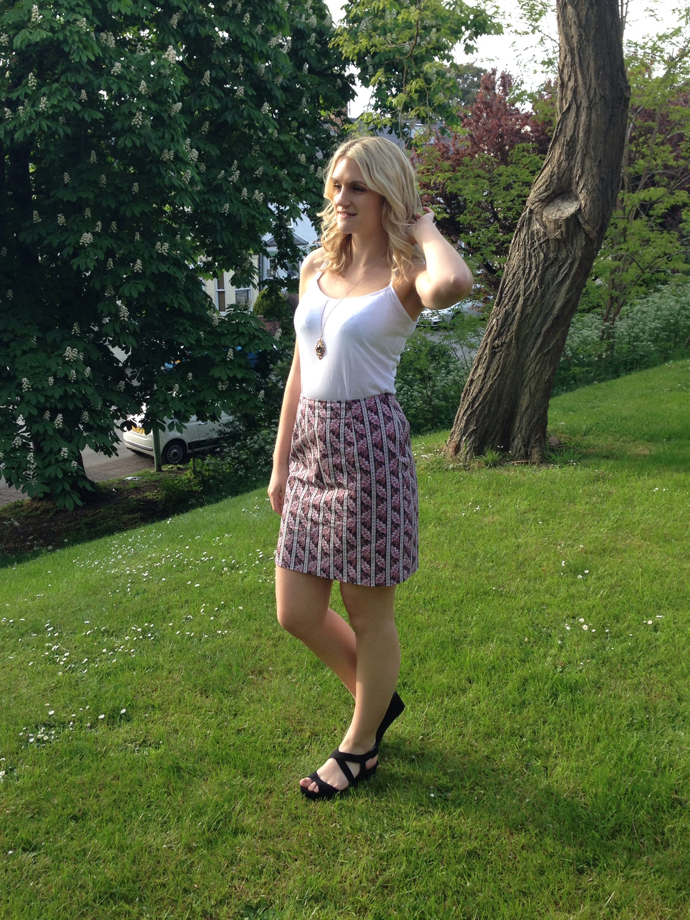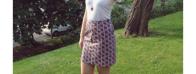 And for the final day of Me Made May I went for this red dress. This is a bit of a mash up of two patterns – Cynthia Rowley 2054 top (altered quite a bit) and New Look 6262 skirt. For more info on this one see my earlier post.