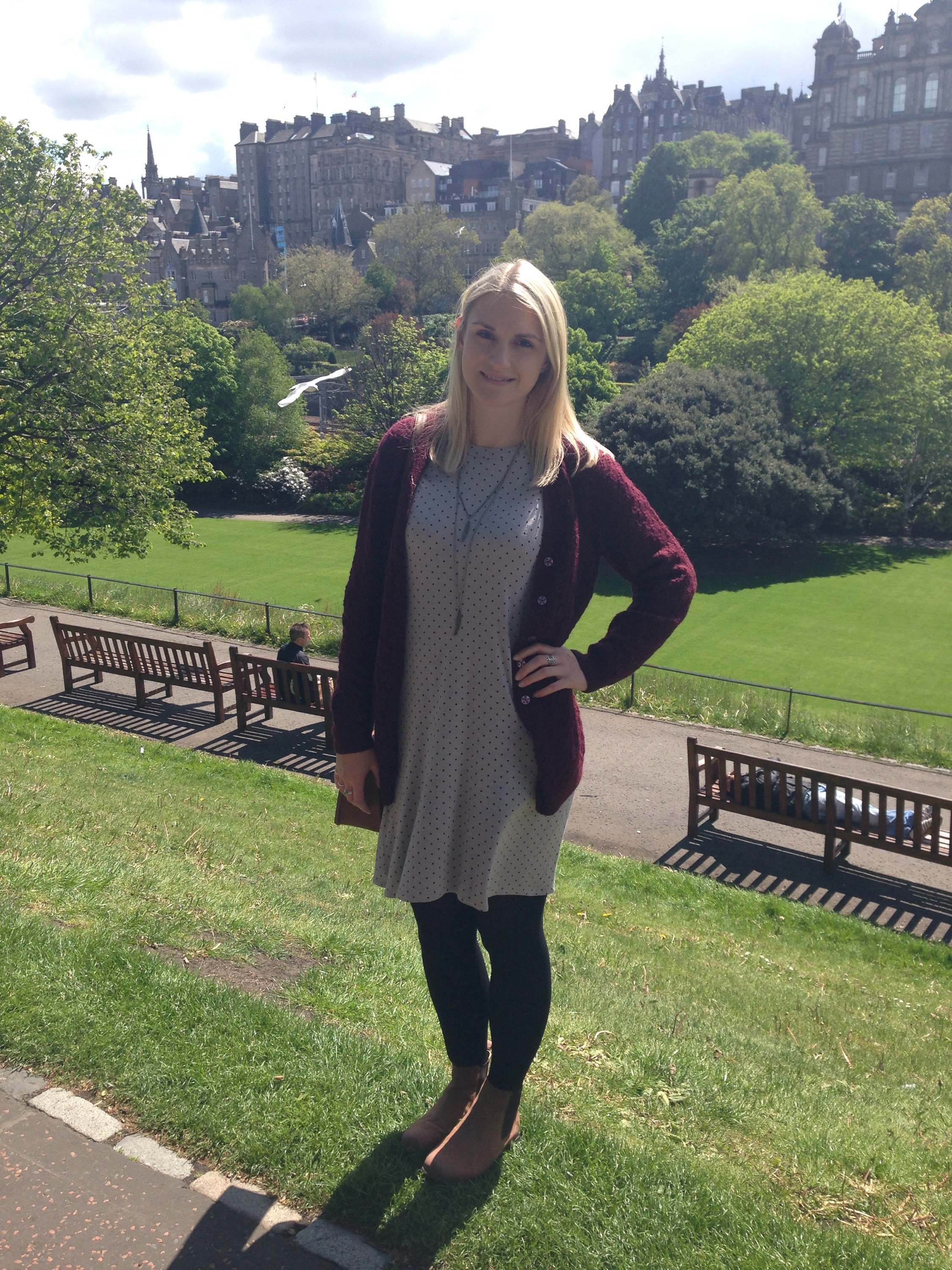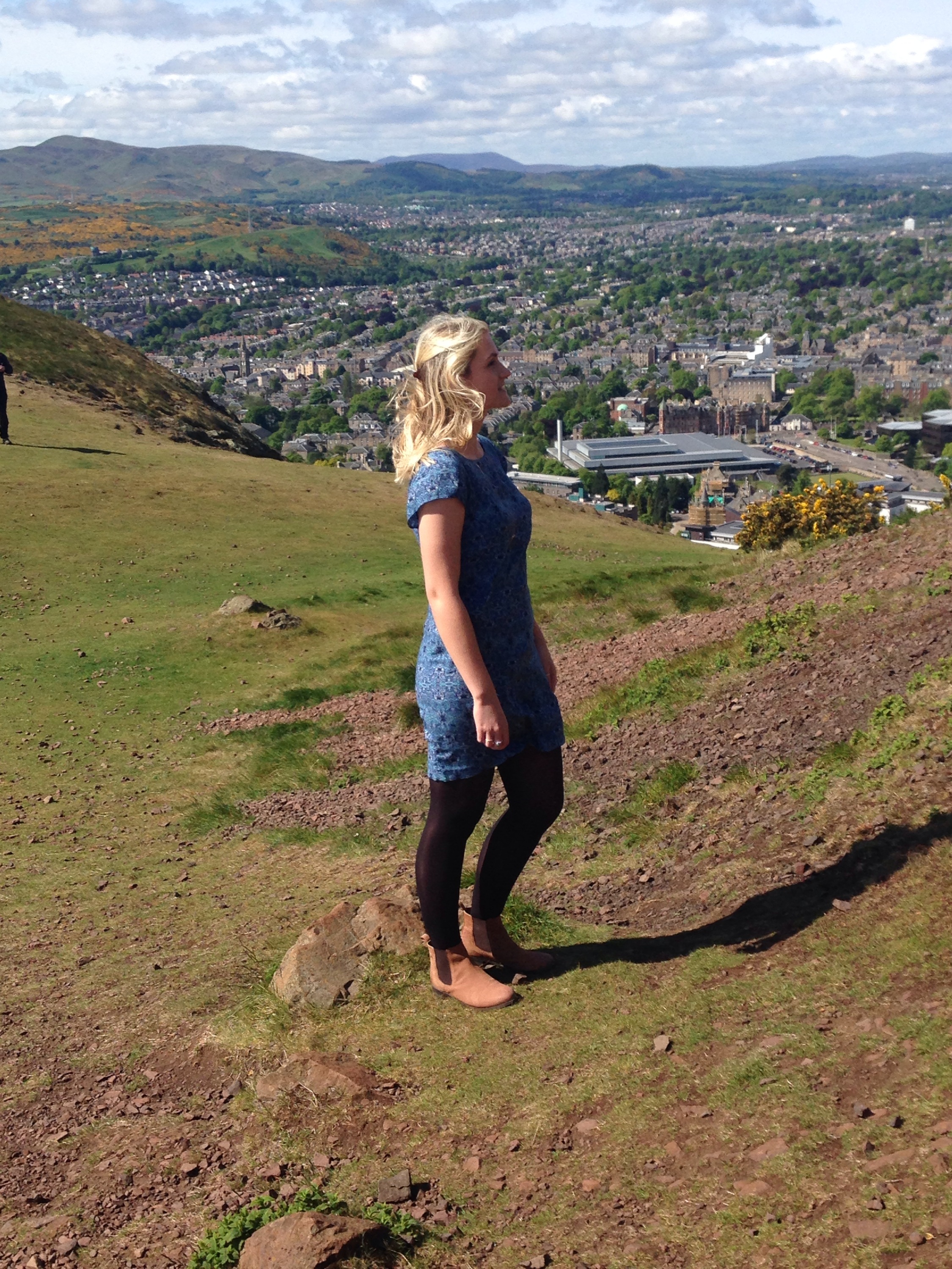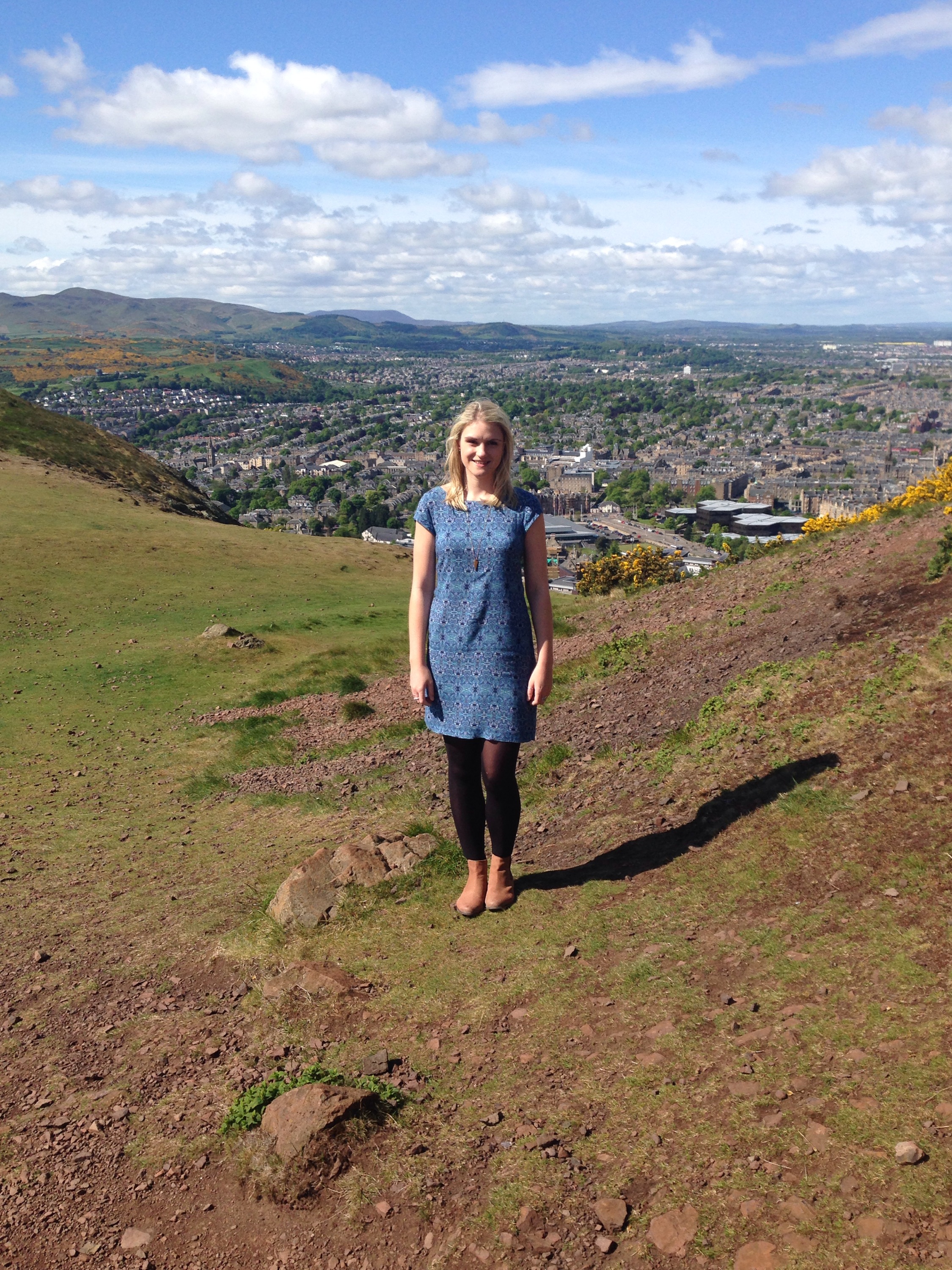 For our second day in Ediburgh I went for my New Look 6095 shift dress in a pretty, blue, kalaidoscope viscose fabric. Not the best choice really seeing as how we walked/climbed up Arthur’s Seat in the morning! Worn with completely inappropriate footwear too – Topshop Chelsea boots with zero grip and also a Primark bag to knock me off balance! Oops. It was worth the hike though, and was incredibly windy at the top – I feel the state of my hair requires that explanation!